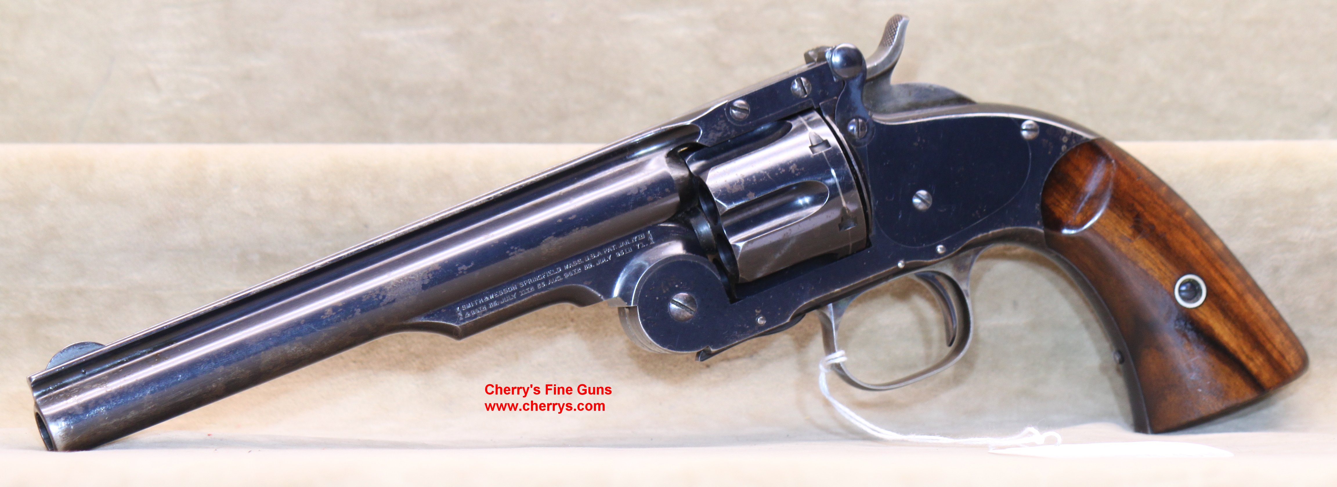 | 100597DEM | Smith & Wesson 2nd Model Schofield, 45 S&W Caliber Revolver With 7" Barrel, 80% Bright Original Blue, Balance Flaked Mostly On Barrel, Fine Bore, Trigger Guard 80% Soft Case Colors, Fine Mechanics, Grips Numbered To Gun, Grips Carefully Refinished And Cartouches Removed, U.S. On Butt, Antique | $10,500.00 | 1,2,3 |